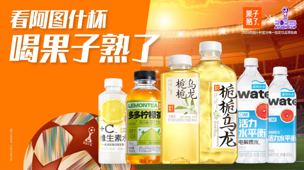 果子熟了是创立于2019年12月的新锐饮料品牌,旗下有果子熟了无糖茶、活力水平衡电解质水、多多柠檬茶等10余个系列产品,据第三方平台“马上赢”数据显示,2025年上半年,果子熟了在国内无糖茶品类中市场份额排名第三,仅次于农夫山泉和三得利。此外,果子熟了无糖茶一年销量超过4亿瓶,已成为该品牌旗下首个10亿级大单品。